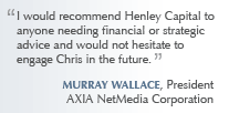 Henley Capital Corporation was incorporated in 1995 and is an independent, privately owned exempt market dealer and portfolio manager. The company operates in two principal areas: providing investment banking services to corporate clients as well as discretionary investment management services to private clients, families, charitable foundations, endowments and private and public companies.